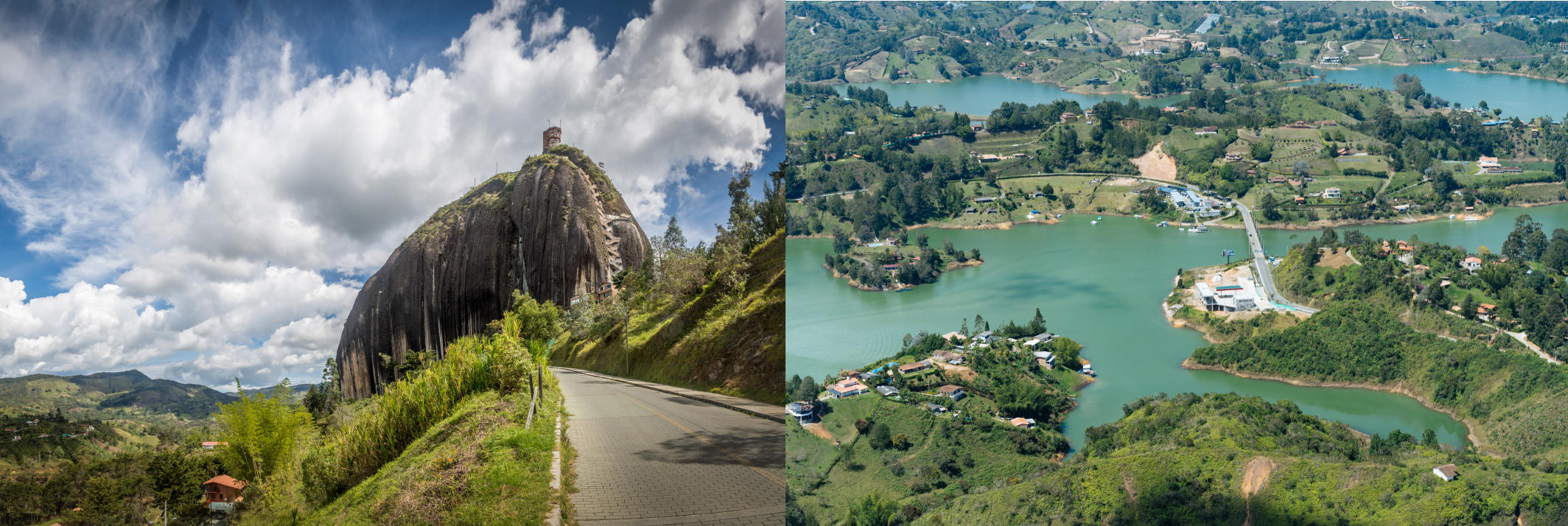 Climb the second largest stone in the world and be amazed by the beauty of countless islands and peninsulas divided by sweet water. Navigate the dam by boat, walk through the most colorful town in Colombia, where each front of your houses tells a story, and have a ride in a tuc tuc to discover the town in the funniest way.